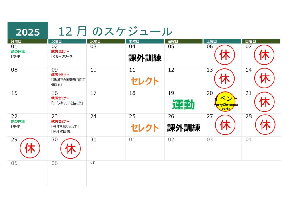 2025年12月 スケジュール